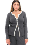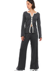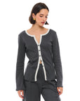 חולצת כפתורים בגזרה קרובה לגוף עם שרוול ארוך מתרחב, המדגישה את הקווים הנשיים. עשויה מבד סריג רך, ואידיאלית לשילוב עם פריטים אחרים וליצירת מראה שכבות.
