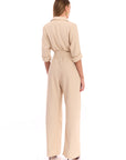 אוברול בגזרה מחוייטת עם כפתרה קדמית, צווארון וחפתים בסיומת שרוול. מגיע עם חגורת קשירה למותן תואמת