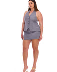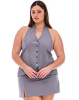 וסט מחויט עם כפתרה קדמית הנקשר בגב ובצוואר ובכך ניתן להתאימו לפי הצורך