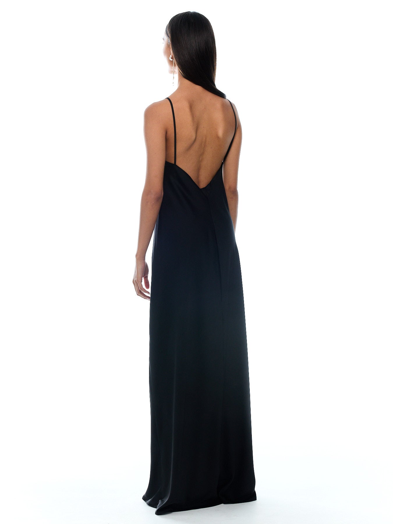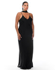 שמלת מקסי בגזרת אלכסון, קרובה לגוף עם מחשוף וי מקדימה וגב פתוח. השמלה עם בטנה וכתפייה מתכוננת . מגיעה עם חגורת קשירה תואמת.
