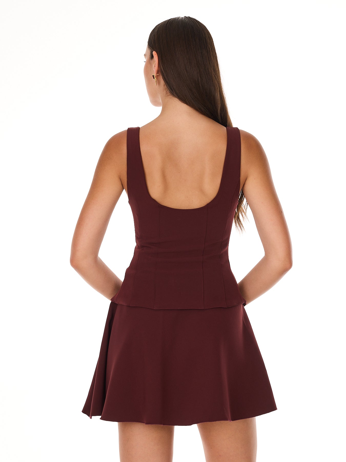 חצאית מיני בגזרת פעמון עם רוכסן וכפתור בצד. עשויה מבד קרפ לייקרה ותהיה מושלמת לשילוב עם כל טופ ליום או לערב.