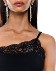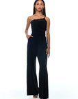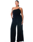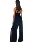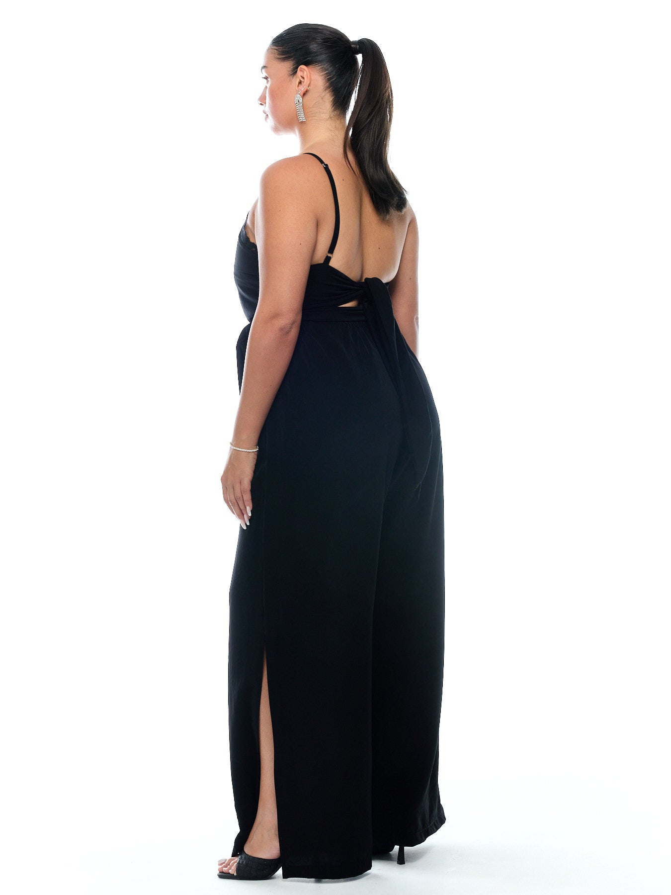 אוברול בגזרה אסימטרית בשילוב תחרה במחשוף עם סרט קשירה בגב הניתן להידוק לפי הצורך, וגומי פנימי במותן. מכנס נשפך על הגוף עם שסעים בצידי הגוף וכיסים.