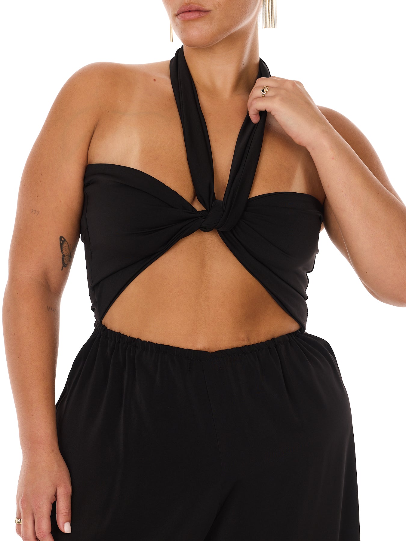 אוברול סטרפלס עם מכנס ארוך בגזרה רחבה. בחלקו העליון נקשר בגב וניתן להידוק לפי הצורך, ובמותן אחורית גומי פנימי הנותן התאמה מירבית.